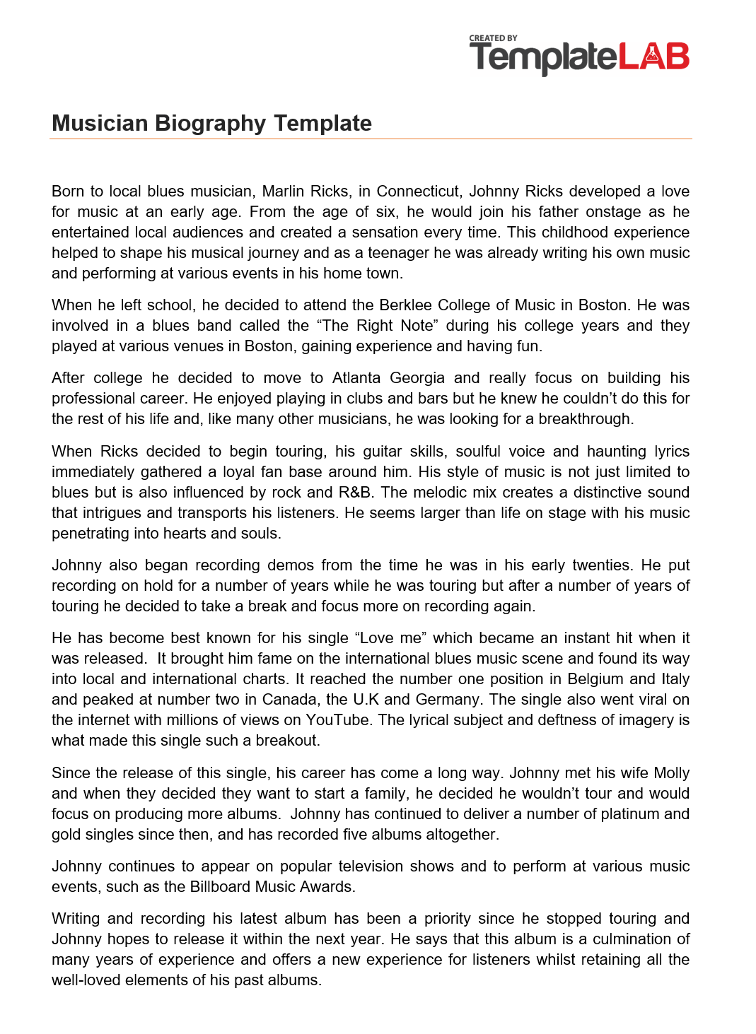 We are providing up to 15 different biography templates available for immediate use. If there's something that you think is interesting or important to add, by all means do so! Biography templates guide you in knowing what to leave in and what to leave out of the biography. All the resume templates here are drafted by professionals and you are promised a standard reliable artist …. Biography templates guide you in knowing what to leave in and what to leave out of the biography.